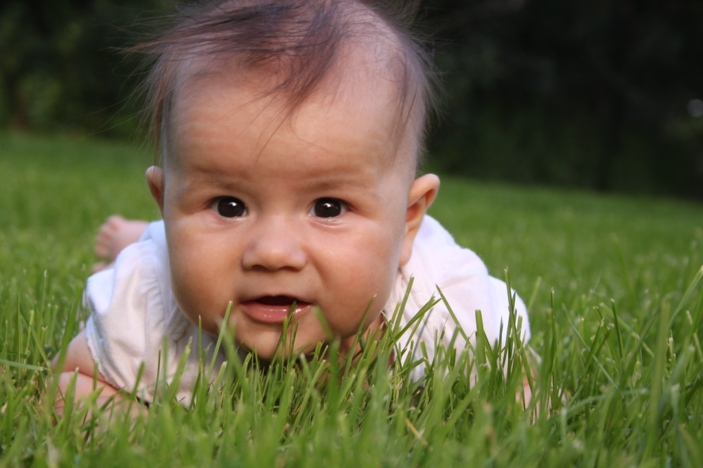 Mi-am descoperit piciorușele! tare-mi place să mă joc cu ele 😉 Ba chiar fac tentative să le trag la guriță – dar nu prea-mi reușește, am piciorelele cam scurte la acestă vârstă… cred că pe la 6 luni numai bine o să ajungă ele în gurița mea! 😉