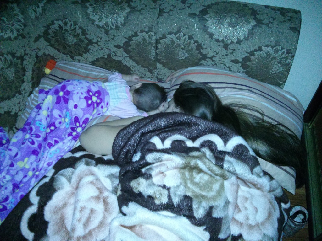 aici Olivia doarme dulce cu mătușica Adelina! 😉 2 bombonele!