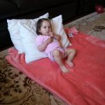 Cu pernuta la spate, ca sa-mi fie mai comod sa stau intinsa si sa privesc preferatele mele desenele animate. 😉