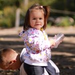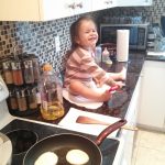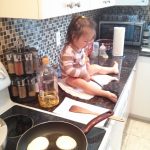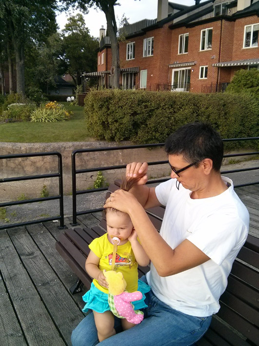 Tati a avut grijă de mine, a experimentat pe coafura mea. Mamii-paparazzi a prins un cadru cum tati îmi leagă coafura-codiță. Nu prea știe el să lege fundițe dar va învăța 🙂