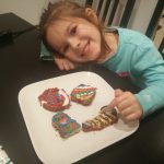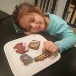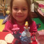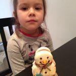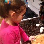 Pe ultima sută de metri al anului 2016 pregătim o salată Olivie. Ghici cine o pregătește… desigur Olivia 🙂 Foarte atent mânuiește cuțitul în așa fel ca această salată să fie una deosebită. Toate eggușoarele tăiate le adăugăm la salată.